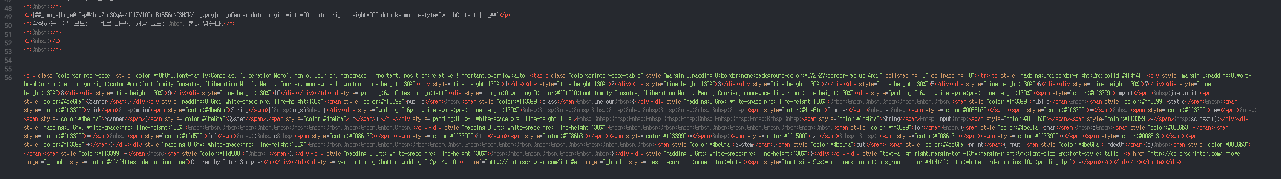 작성하는 글의 모드를 HTML로 바꾼후 해당 코드를 붙혀 넣는다.