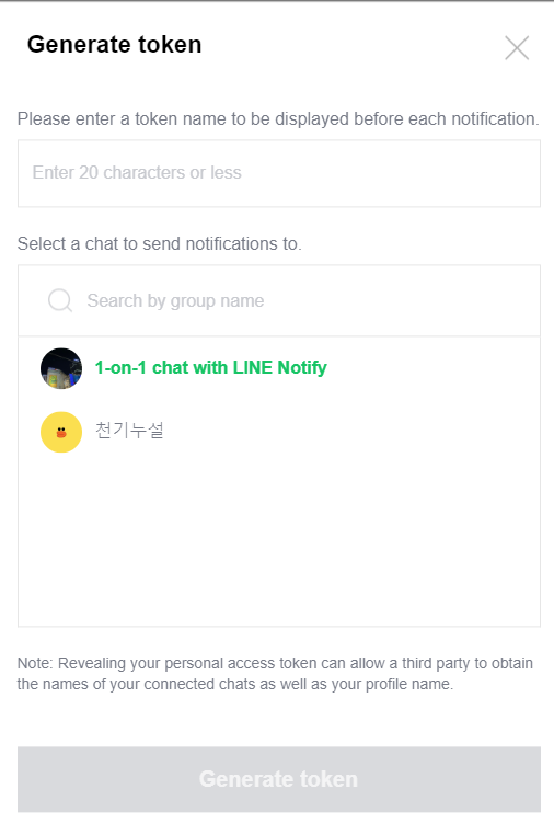 LINE Notify 토큰 발급하기(https://notify-bot.line.me/)