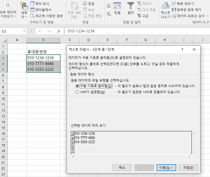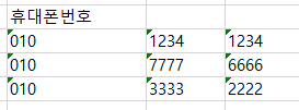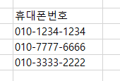 엑셀에 위와 같이 -로 구분된 전화번호가 있다고 가정해보자.