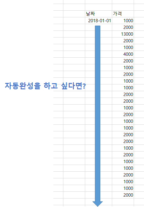 2018-01-01부터 시작하여 2018-01-02 이렇게 순차적으로 증가하는 데이터를 자동완성으로 채워넣고 싶으면