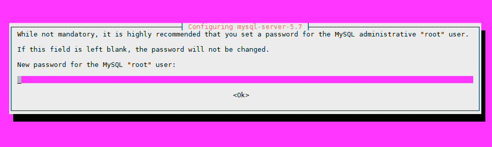 $ mysql -u root -p Enter password: Welcome to the MySQL monitor. Commands end with ; or \g. Your MySQL connection id is 4 Server version: 5.7.28-0ubuntu0.16.04.2 (Ubuntu) Copyright (c) 2000, 2019, Oracle and/or its affiliates. All rights reserved. Oracle is a registered trademark of Oracle Corporation and/or its affiliates. Other names may be trademarks of their respective owners. Type 'help;' or '\h' for help. Type '\c' to clear the current input statement. mysql>